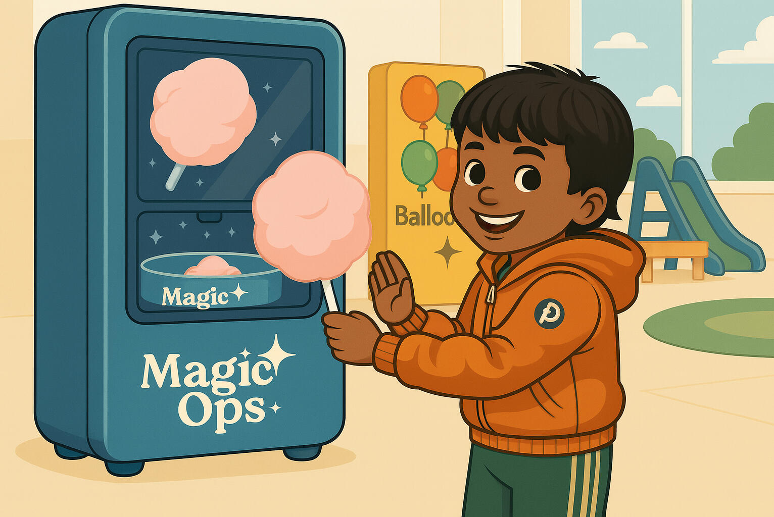 MagicOps is a robotic cotton candy vending experience that spins fresh sugar clouds on demand. Fully automated and fully managed — no hassle, no cleanup, just joy.✨ Fresh cotton candy with the push of a button